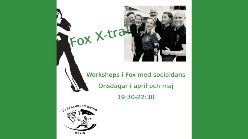 Under april-maj kommer vi att arrangera workshops i Fox med socialdans kl. 19.30-22.30 i Swinghallen. Datumen för detta är 15/4, 29/4, 6/5, 13/5, 20/5 och 27/5).